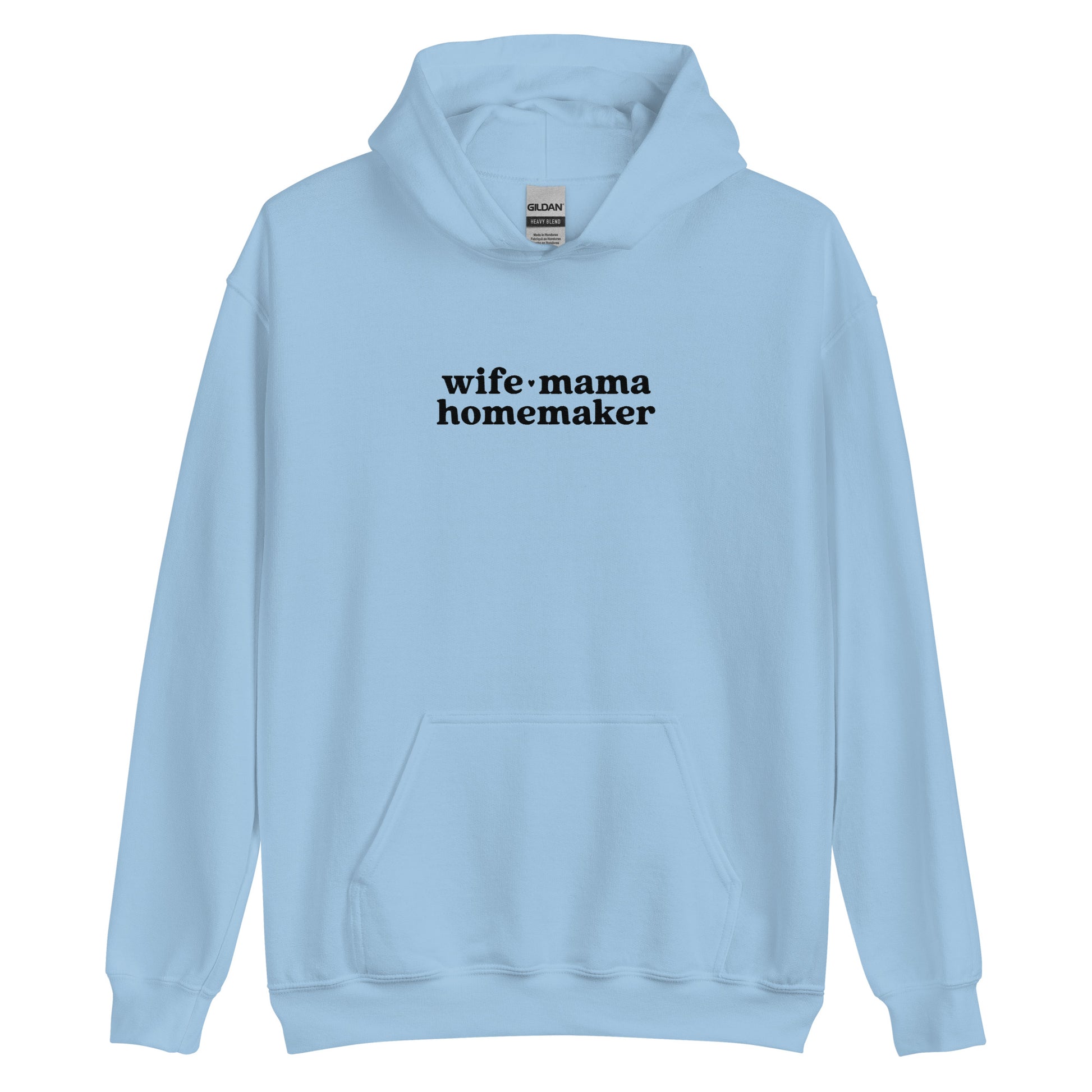 Wife Mama Homemaker Embroidered Hoodie in Blue