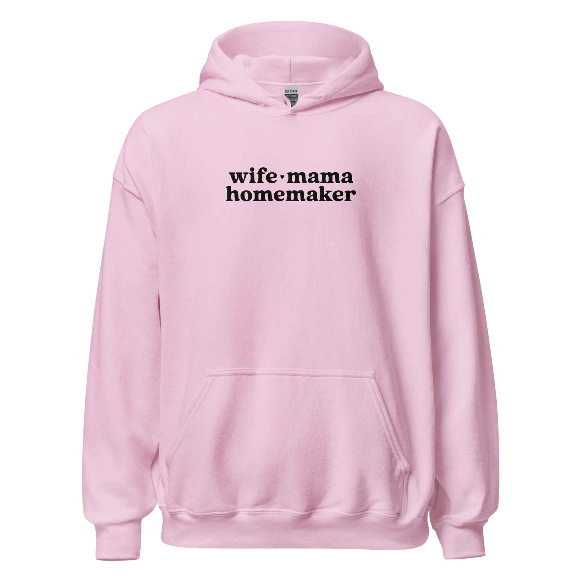 Wife Mama Homemaker Embroidered Hoodie in Pink